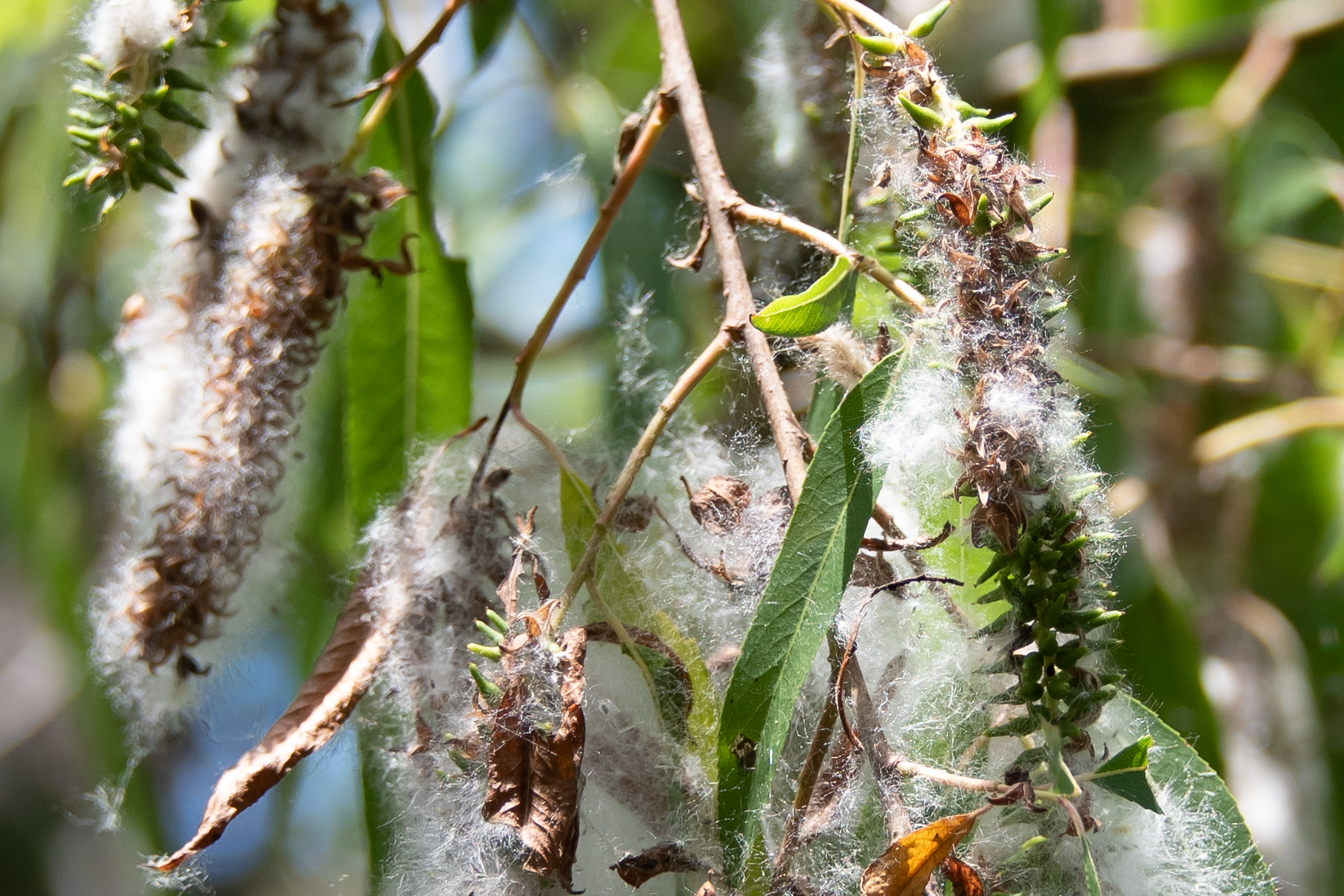 I monitor three other Salix spp (laevigata, lasiolepsis, and exigua). For all of these, the instructions indicate that once the fruits split open to expose the seeds with white fluff, they're considered ripe. Hope this helps!